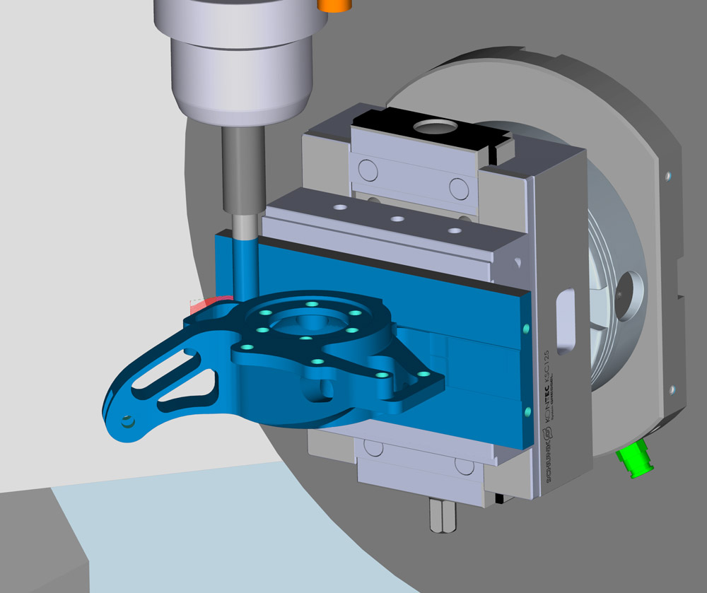 ESPRIT SolidMill Production adds 5-axis machining capability to ESPRIT’s milling cycles. Programmers can use multiple fixture offset with local or global work coordinates to machine any part face, using any ESPRIT machining cycle. ESPRIT’s 5-axis indexing supports any combination of rotary tables and tilting heads to orient the part, then machines with 2 1/2 and 3-axis operations using one or more ESPRIT cycles.