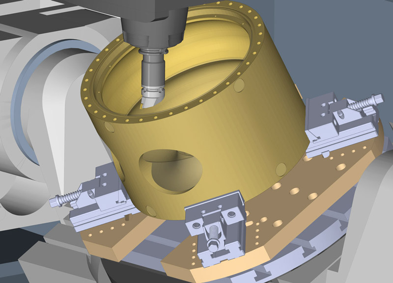 Capitalize on the power and flexibility of mill-turn machines with B-axis capability for precise 5-axis simultaneous and 5-axis index milling — on the front and back of any workpiece. ESPRIT’s full 5-axis control lets you easily program the non-perpendicular multi-axis tool movements required to machine the intricate features and compound angles of medical components, complex valves, tool holders, oil drilling tools, and the like. ESPRIT provides advanced 5-axis control for its machining cycles including facing, boring, grooving, threading, contouring, pocketing, hole making, and 3D finishing.