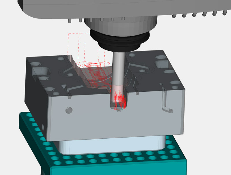 • Optimized Strategies: Includes bottom-up pocketing and Z-level roughing for efficient material removal.